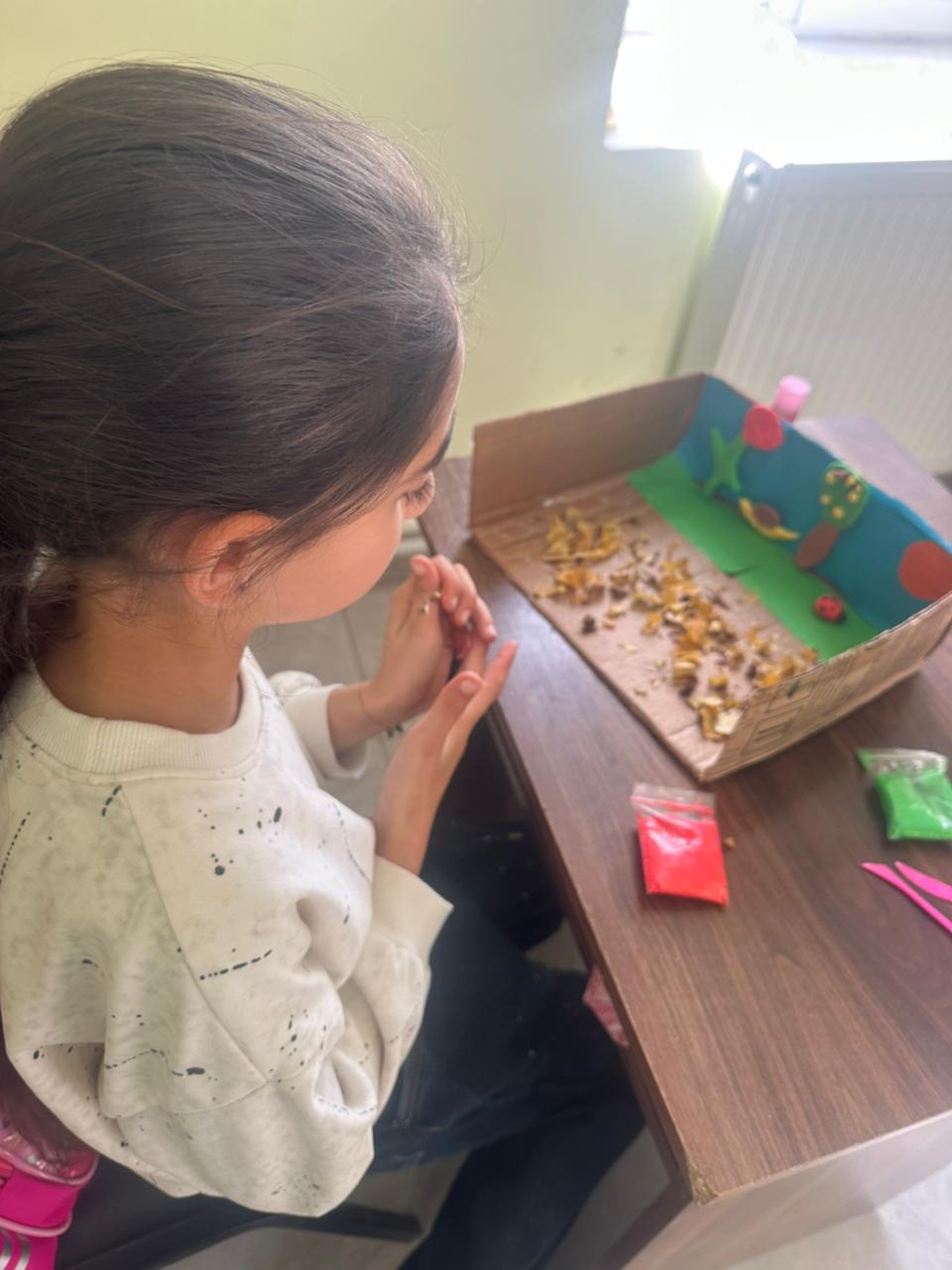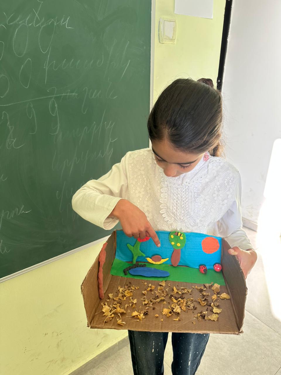 მოსწავლეებმა ჯერ ტექსტი შეისწავლეს, შემდეგ კი დიორამები შექმნეს, პრეზენტაცია გამართეს და საკუთარ ნამუშევრებზე ისაუბრეს.