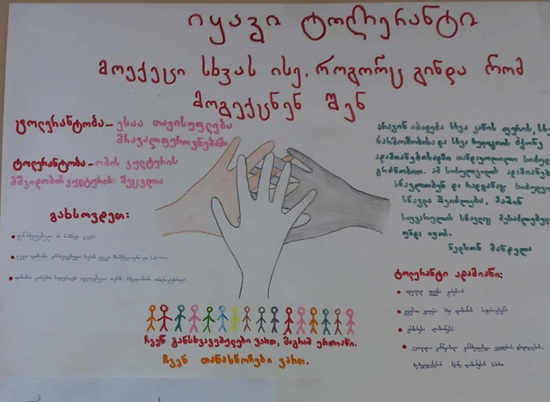 მოსწავლეებმა უკვე კარგად იციან, რომ ტოლერანტობა ესაა თავისუფლება მრავალფეროვნებაში. ეს არის მორალური ნორმა და სამართლებლივი მოთხოვნილებაც. ყველა ადამიანი განსხვავებულია, მაგრამ ყველა მნიშვნელოვანი და საჭიროა.