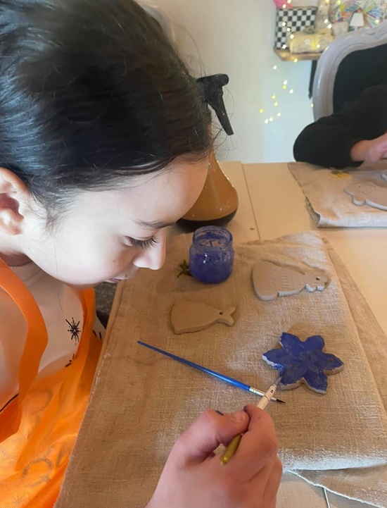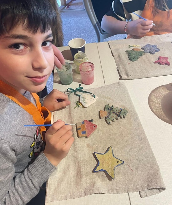 ბავშვებმა დიდი ინტერესი გამოავლინეს თიხის დამუშავების პროცესის მიმართ, საკუთარი ხელით შექმნეს საახალწლო დეკორაციები და თავიანთი გემოვნებით გააფერადეს.