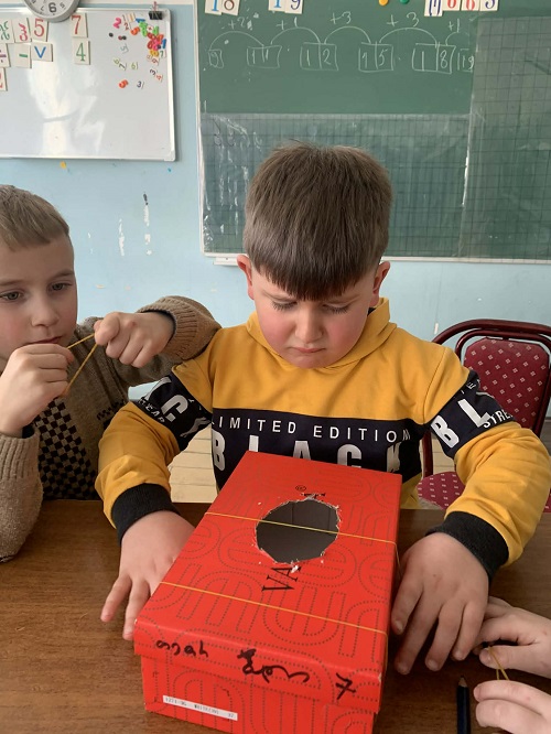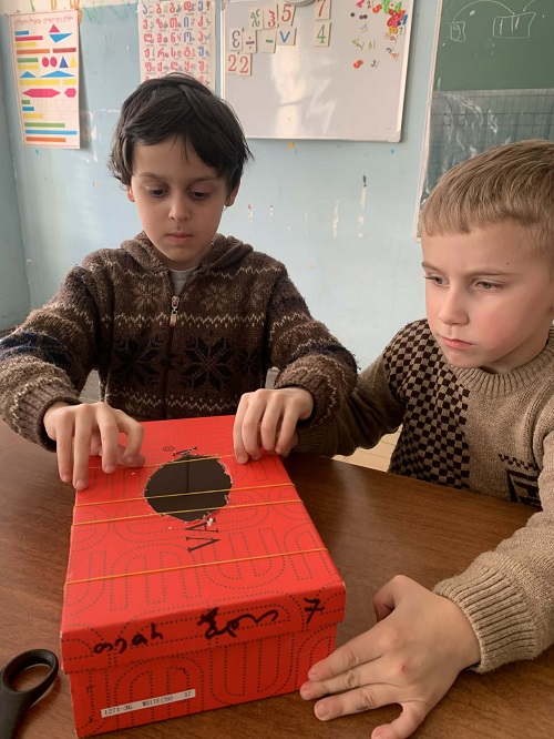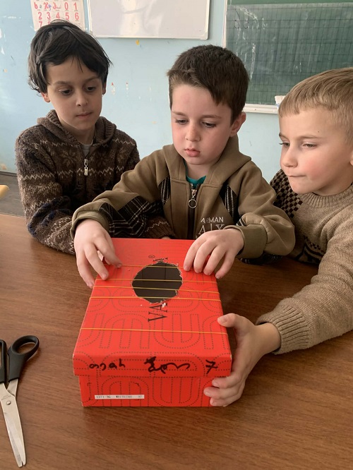 მოსწავლეებმა გაკვეთილზე უყურეს ვიდეოს, სადაც სათამაშო გიტარის დამზადებაა ნაჩვენები, შემდეგ კი პედაგოგ მაია რიჟამაძესთან ერთად, მუყაოს ყუთის, რეზინებისა და ფანქრების გამოყენებით სათამაშო გიტარა დაამზადეს.