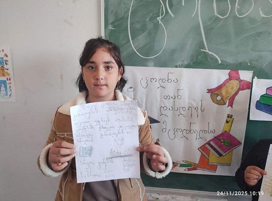 პედაგოგმა მოსწავლეებს კიდევ ერთხელ შეახსენა თუ რა ძალა აქვს ცოდნას. ბავშვებმა კი თემატური პლაკატები შექმნეს, აღნიშნეს, რომ „სწავლა გონების საზრდოა“ და ერთმანეთსა და თანატოლებს წიგნთან მეგობრობისკენ მოუწოდეს.