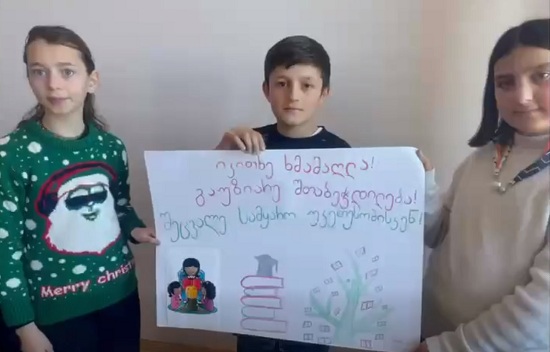 ბავშვებმა ერთმანეთს წიგნის კითვის სიხარული გაუზიარეს, პლაკატიც დაამზადეს და თანატოლებს წიგნთან მეგობრობისკენ მოუწოდეს.