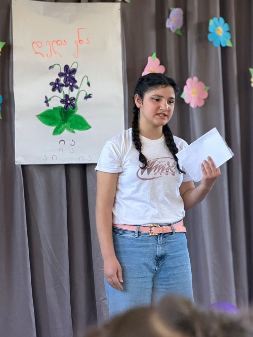 მოსწავლეები დამსწრე საზოგადოების წინაშე მრავალფეროვანი სანახაობით წარდგნენ და ხოტბა შეასხეს ქართული ენის სიდიადეს და მის მნიშვნელობას ერის თვითმყოფადობის შენარჩუნებაში.