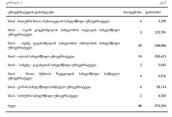 სახელმწიფო აუდიტის სამსახურის რეკომენდაციები უმაღლეს საგანმანათლებლო დაწესებულებებს