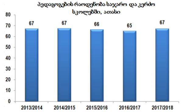 1000-ით იკლებს. 2017-2018 სასწავლო წელს პედაგოგების რაოდენობა ისევ უტოლდება 2013-2014 სასწავლო წლის მაჩვენებელს და